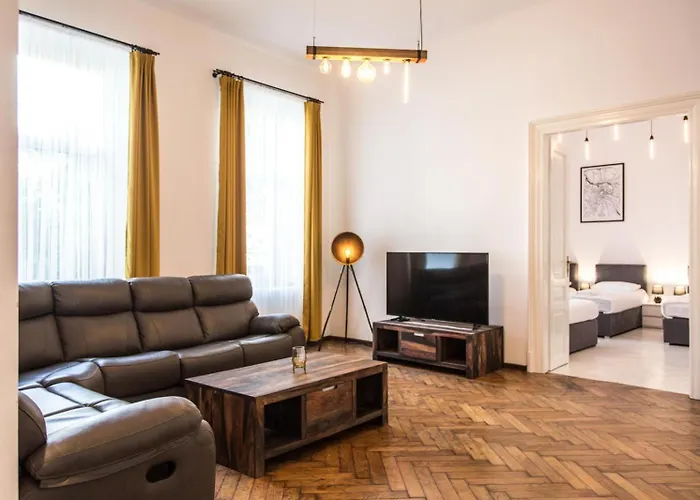 Apartament Przy Wawelu Dla 6 Osob Kraków med 1 sovrum ligger i Krakóws centrum, ungefär 5 minuters gångavstånd från St. Mikael Ärkeängels kyrka. Gästerna kan använda Wi Fi för antingen jobb eller fritid.